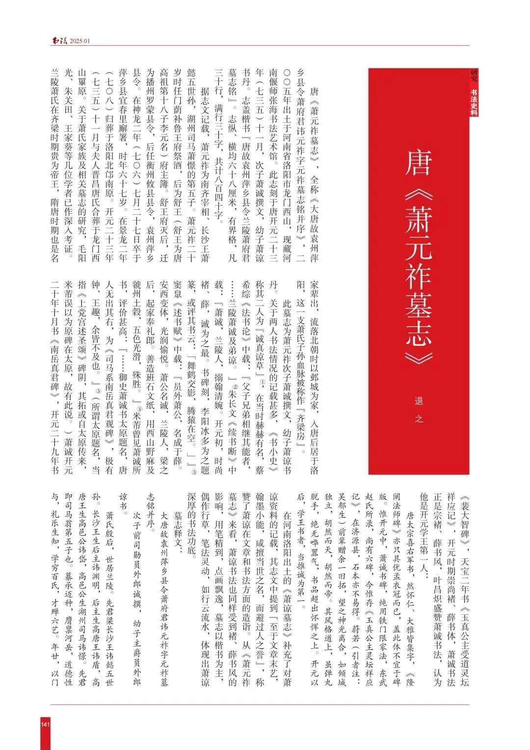 ·2025年第1期, 退之《唐〈萧元祚墓志〉》