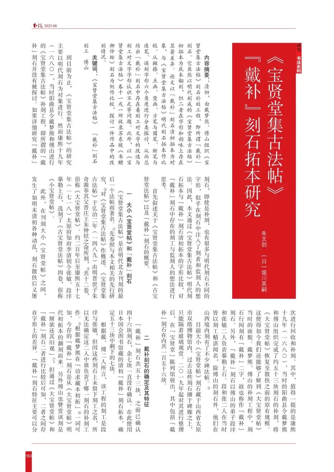 ·2025年第8期,朱文剑、堀川英嗣《〈宝贤堂集古法帖〉“戴补”刻石拓本研究》