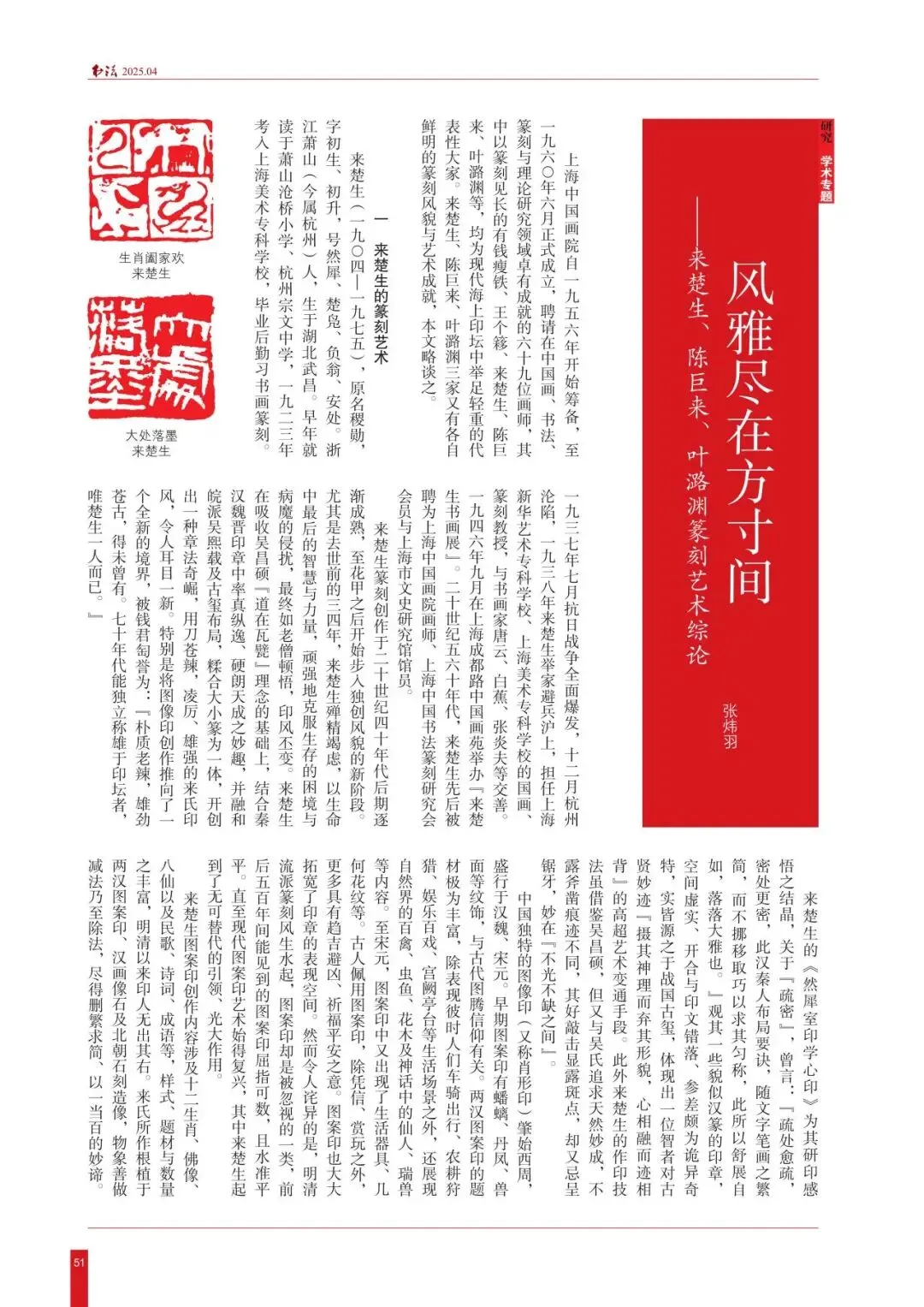 ·2025年第4期,张炜羽《风雅尽在方寸间——来楚生、陈巨来、叶潞渊篆刻艺术综论》