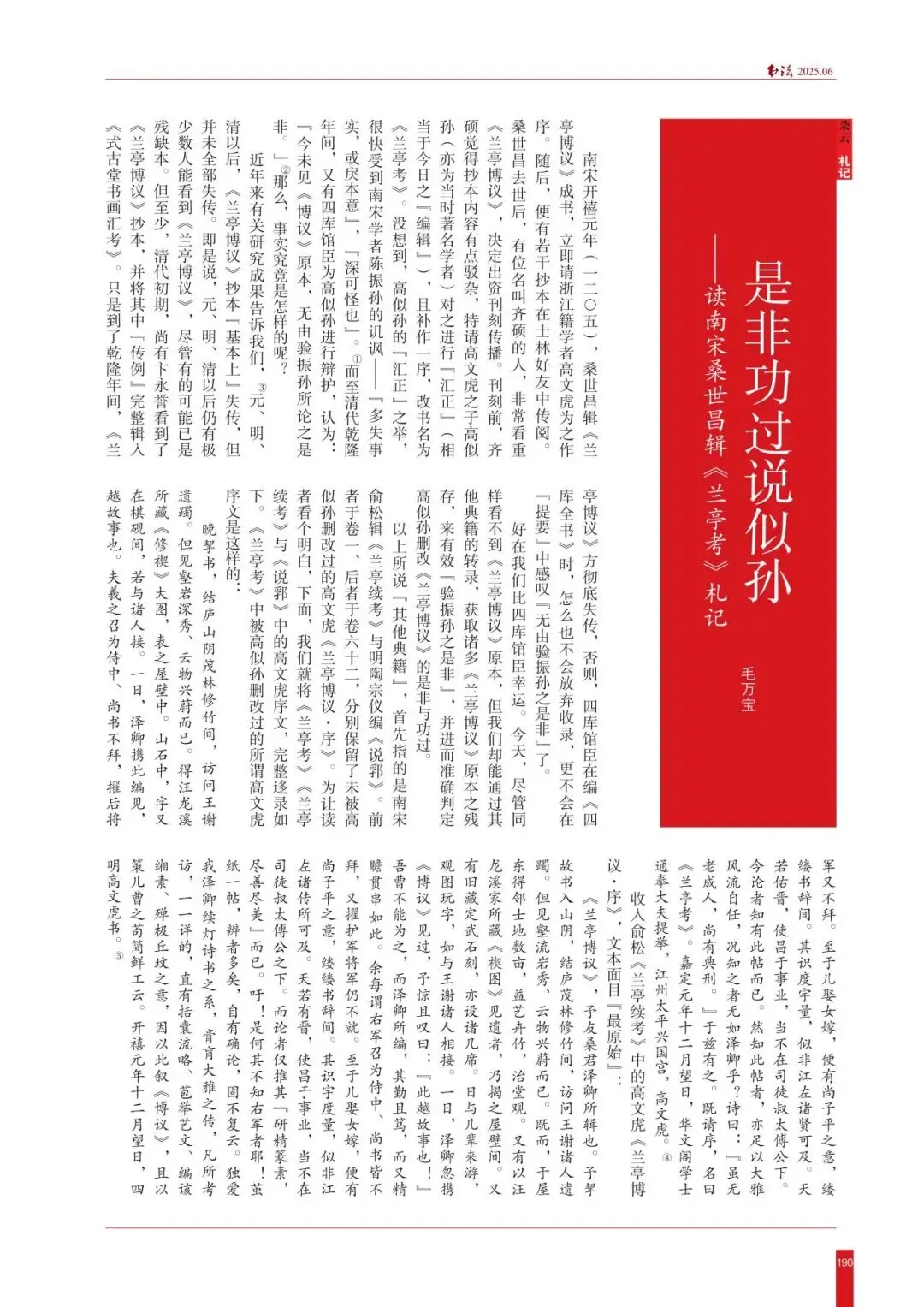 ·2025年第6期,毛万宝《是非功过说似孙——读南宋桑世昌辑〈兰亭考〉札记》