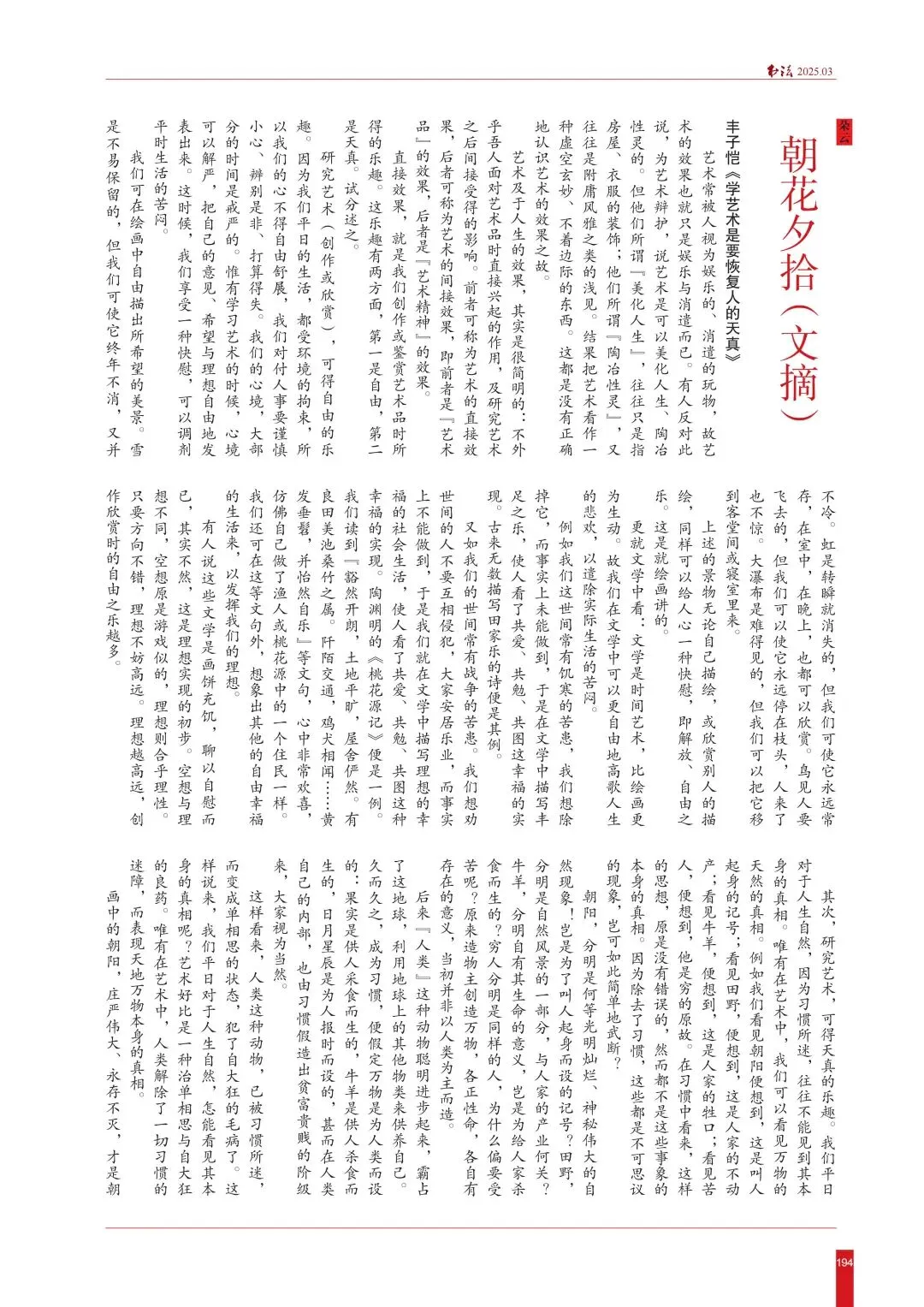 ·2025年第3期,丰子恺《学艺术是要恢复人的天真》