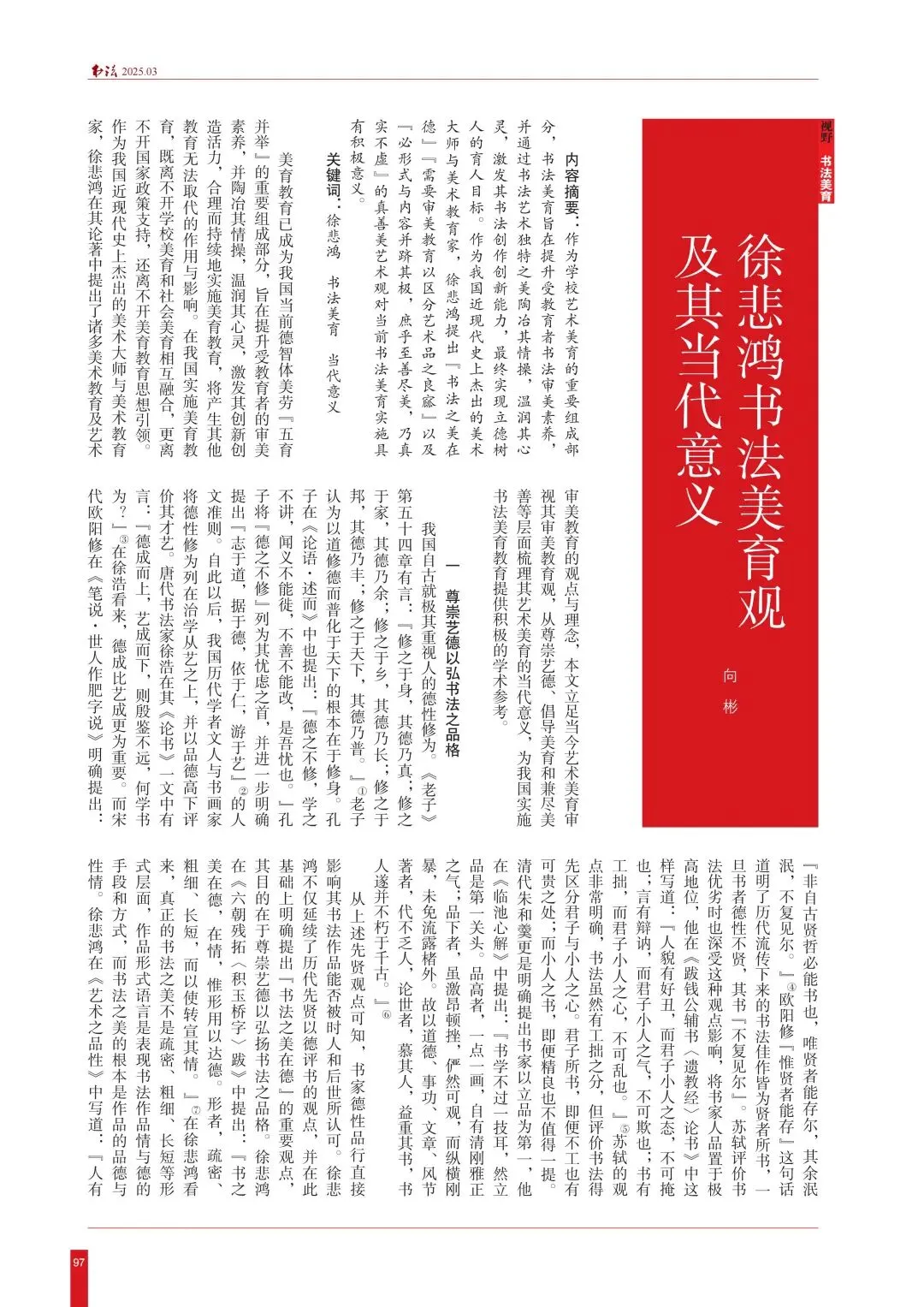 ·2025年第3期,向彬《徐悲鸿书法美育观及其当代意义》