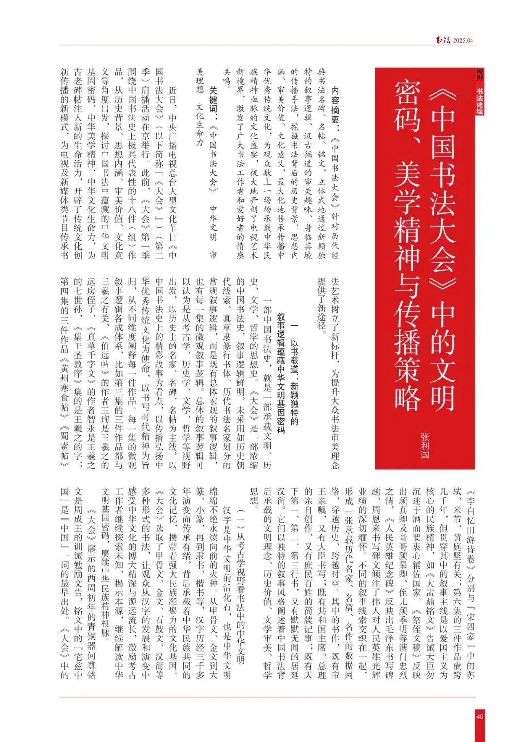 ·2025年第4期,张利国《〈中国书法大会〉中的文明密码、美学精神与传播策略》