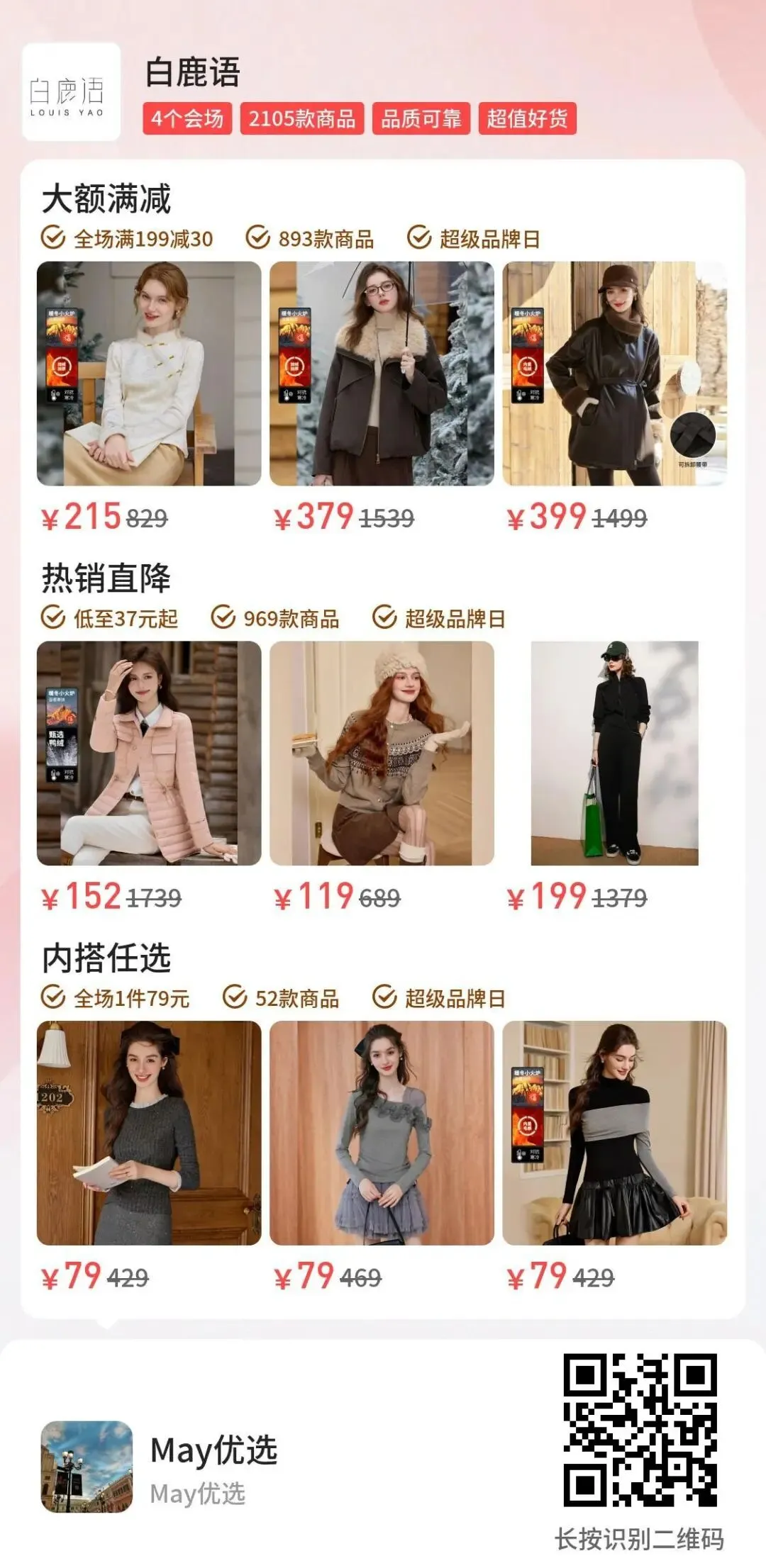 白鹿语,中国十佳设计师品牌女装!荣登巴黎时装周!款式品质都在线,一口价79元专场先挑!满199-30、699-100凑单超划算!