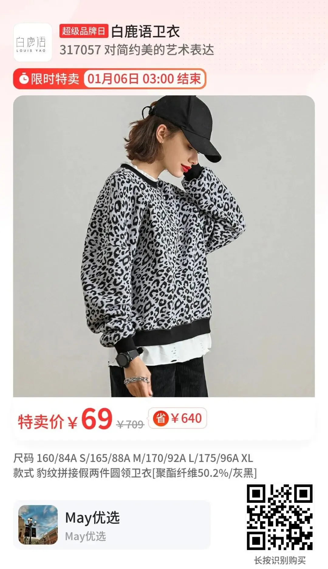 豹纹拼接假两件卫衣只要69💰,版型显瘦,款式洋气百搭