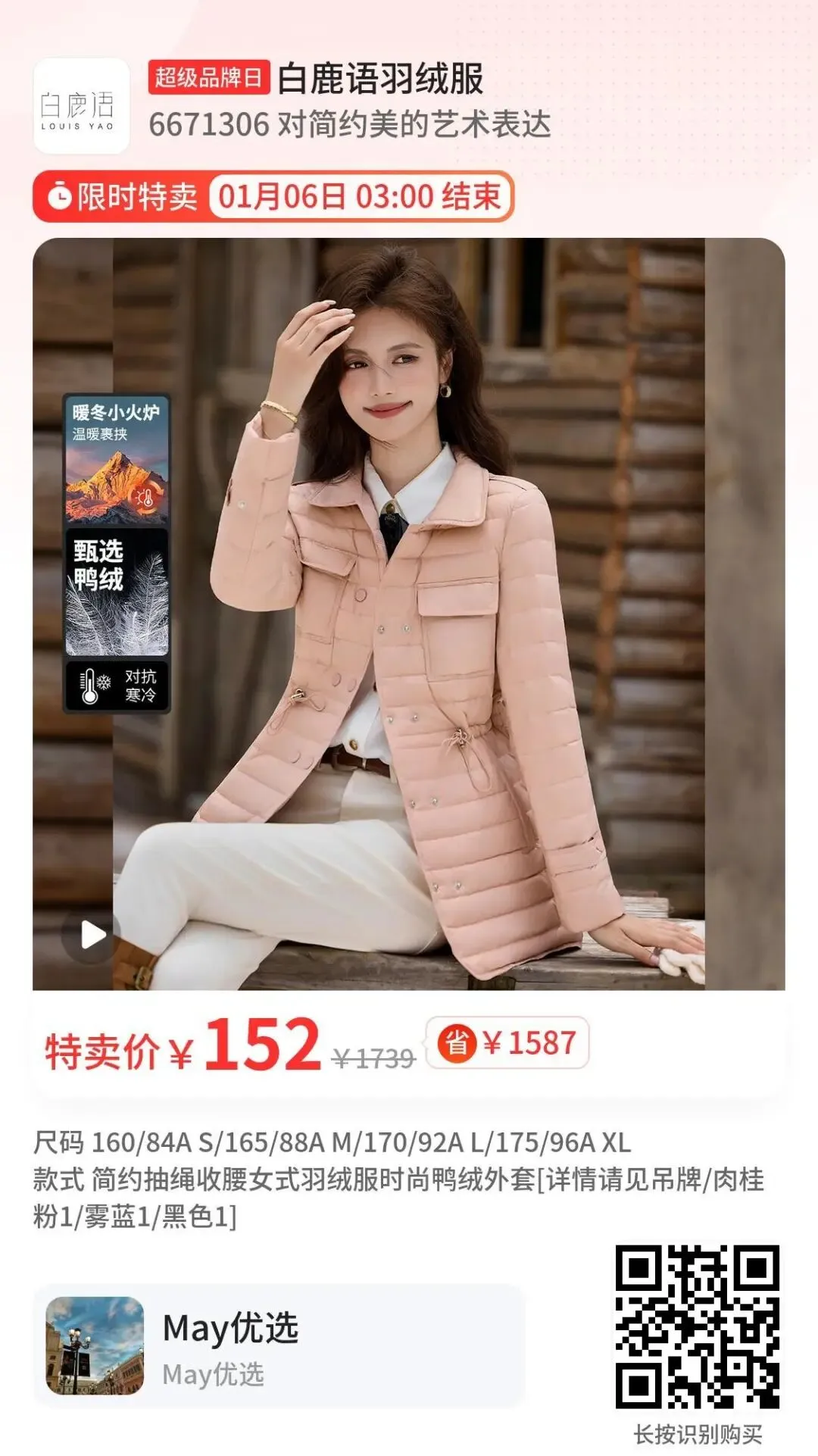 简约轻薄羽绒服,腰部抽绳设计显瘦遮肉,只要152💰