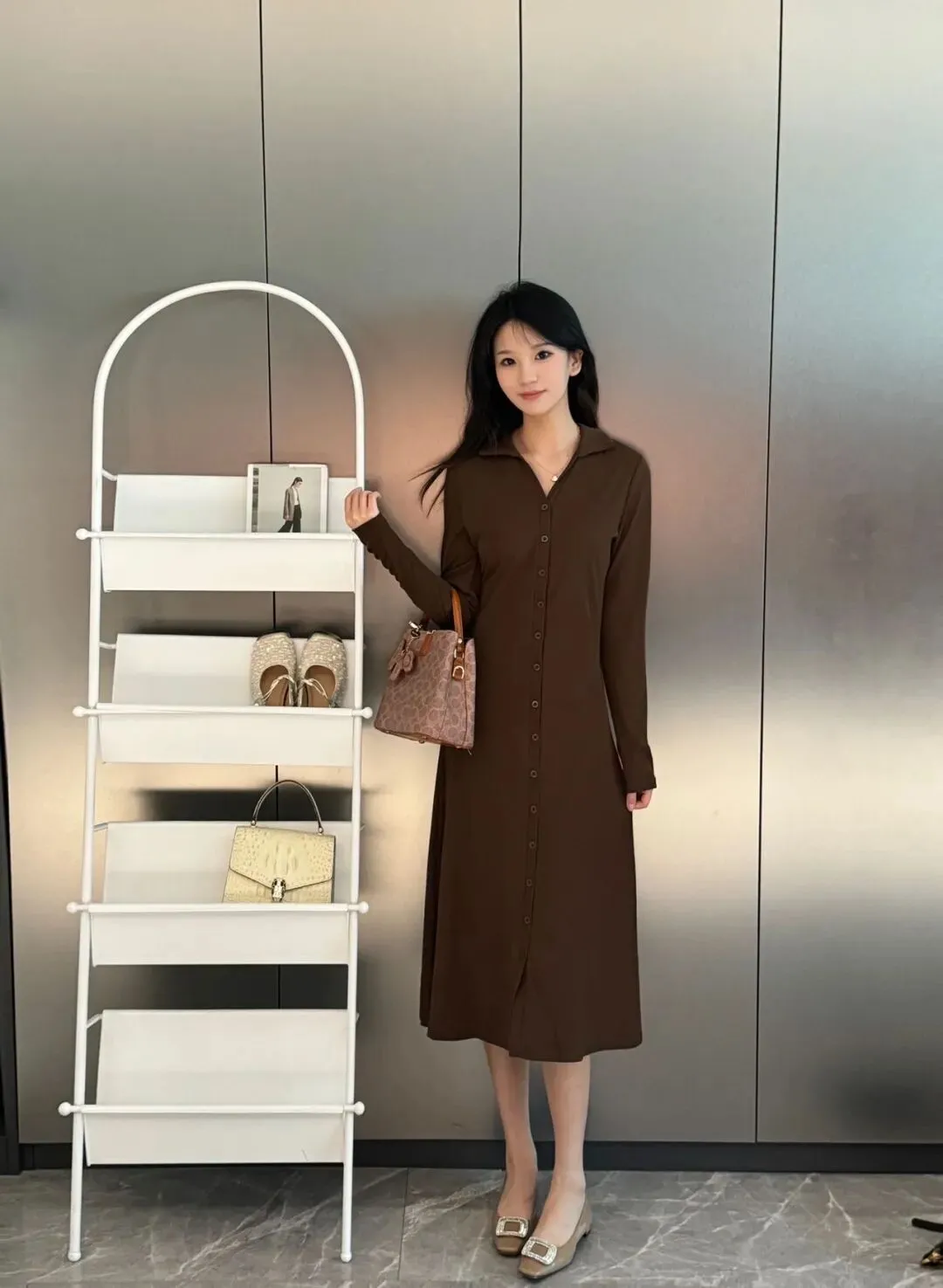 翻领长袖#连衣裙,特别显瘦!纸片人即视感,三季可穿