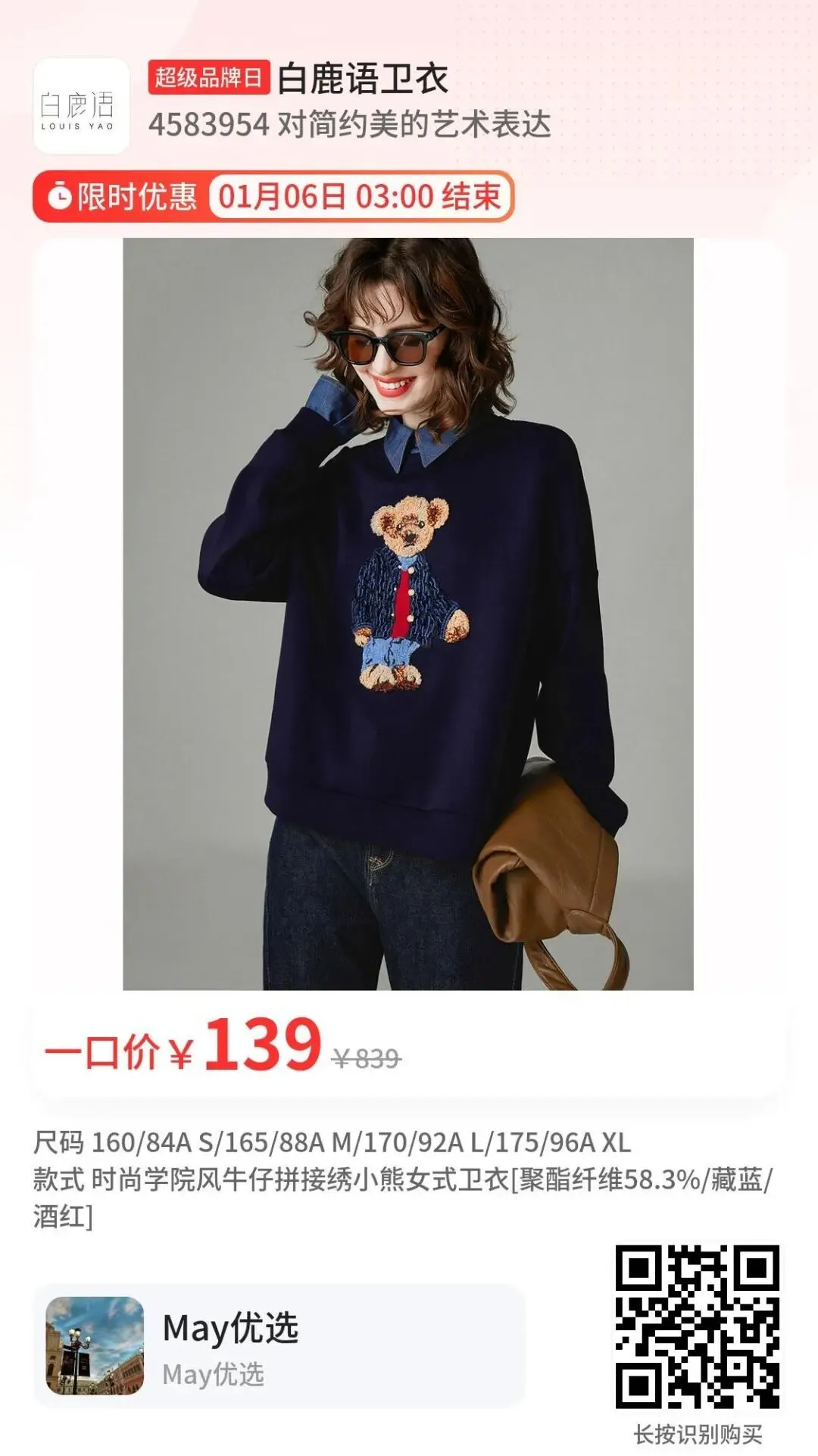 白鹿语家的#卫衣,特别推荐!做工一丝不苟,绒也是A类面料,很软很暖