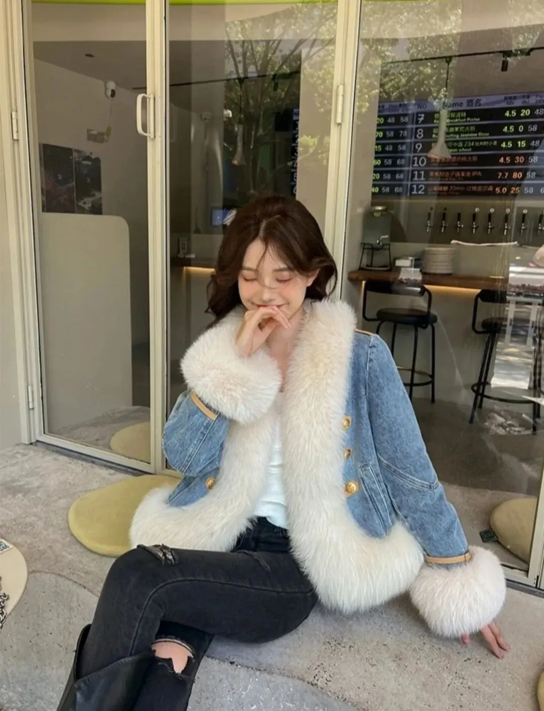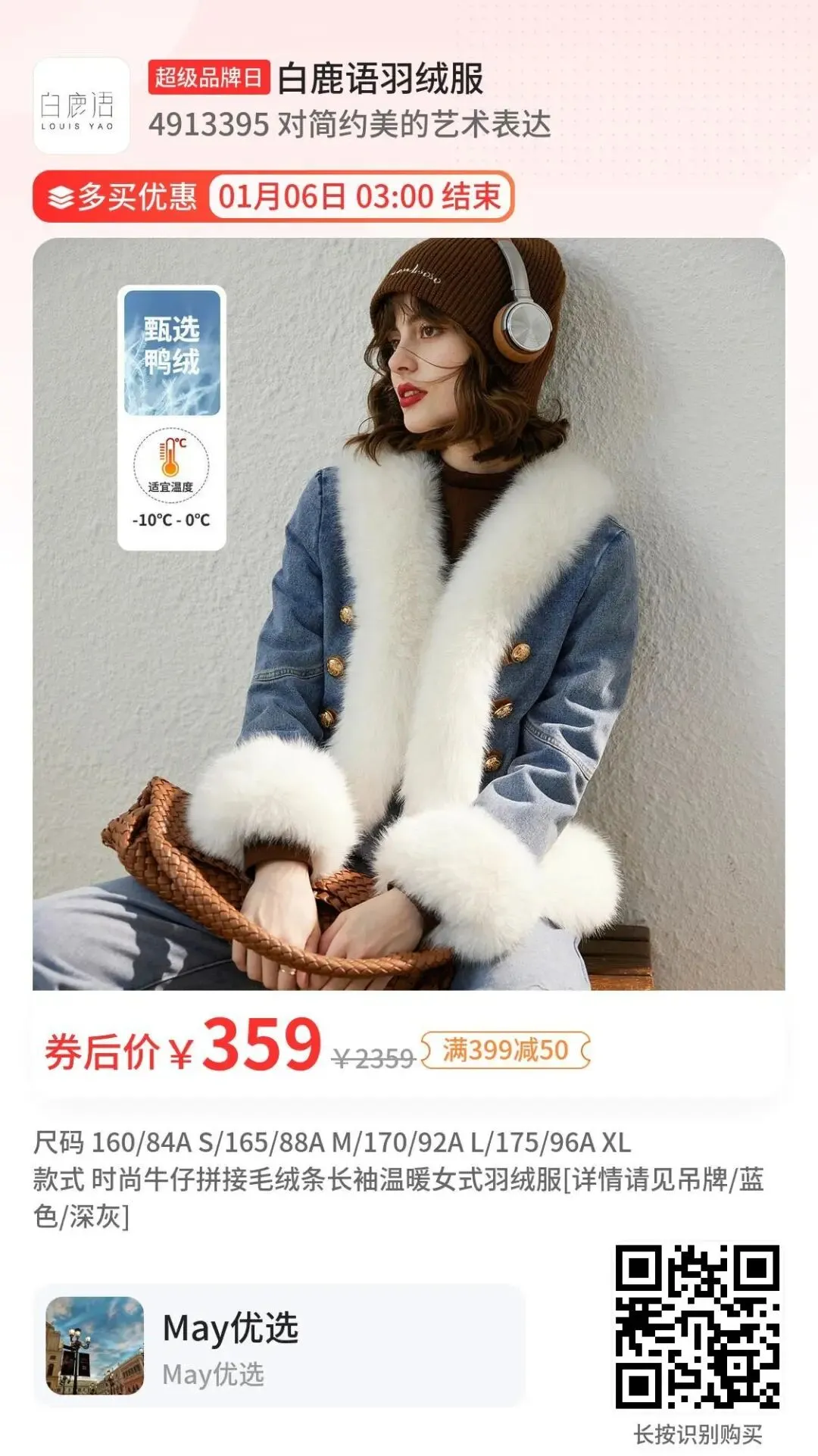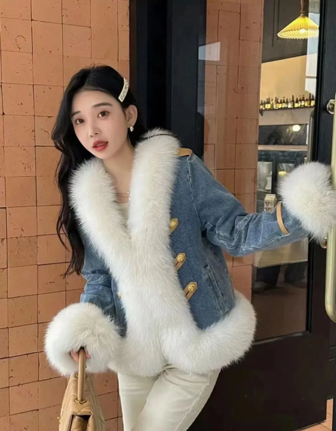 #狐狸毛领牛仔拼接羽绒服绝美❤️