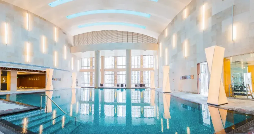 酒店室内恒温泳池拥有挑高16.5米的拱形天花板采用自然采光,且配备专属儿童泳池和专业游泳教练,可提供儿童游泳私教课。是放松身心、畅享愉悦之境~