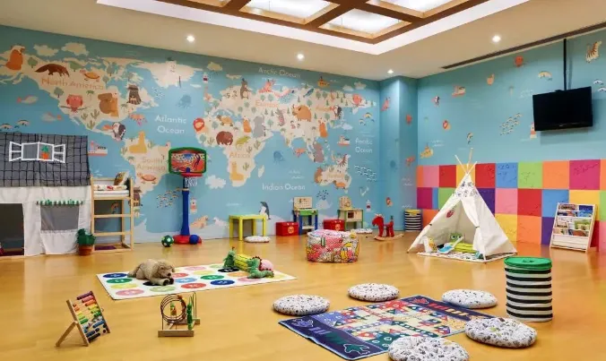 儿童俱乐部里配备了丰富多样的儿童玩具和各式可爱玩偶抱枕,更有广受小朋友喜爱的儿童电视节目和书本读物供赏阅。还打造了蓝鲸乐园、卡丁车、淘气堡等儿童活动场所。配备多款游乐设施,有挖沙池、滑滑梯、玩具车、攀爬架……
