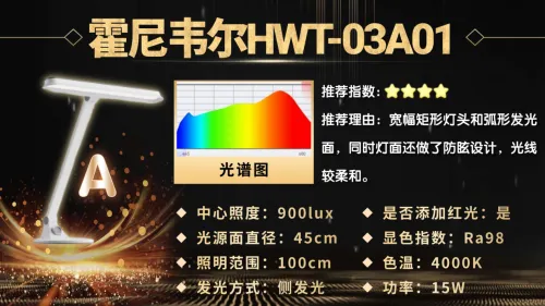 儿童台灯哪个品牌更护眼更好?霍尼韦尔HWT‑03A01整体的表现比较中规中矩,以基础护眼照明和耐用设计为核心。灯头为侧发光结构,配合45cm的宽幅发光面,使光线沿桌面横向铺开,整体照明范围可覆盖约1米的桌面。其中心照度约900lux,亮度表现中规中矩,满足日常书写和阅读需求。但它的显色指数达Ra98,对文字、图像和物体颜色的还原较为真实。在功能配置上,它走的是极简路线,没有复杂的智能系统,更强调可靠性与易用性。灯体采用多段式灯杆结构,可自由调节高度和照射角度,适应不同坐姿和桌面布局。
