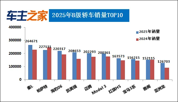 把价格打到10万级的家用插混秦L销量一如既往的强,实实在在俘获了不少用户。除了帕萨特销量下滑雅阁基本持平,其他车型都有所上涨。2025年BBA国内市场销量受挫,此次可以看到上榜的仅剩宝马3系。