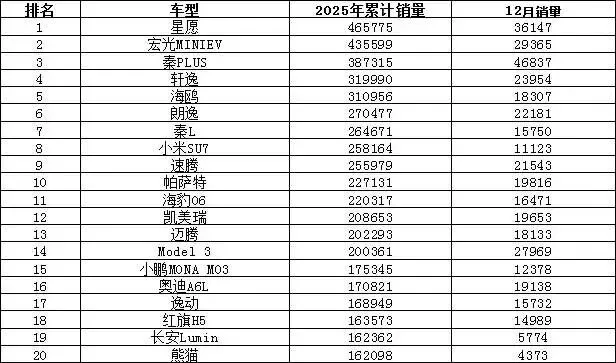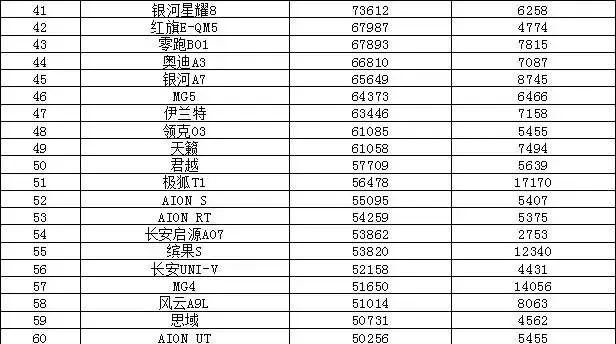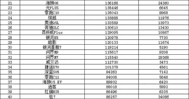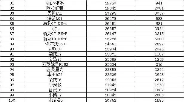 星愿无愧新一代国民最爱小车,涨势迅猛,上市仅一年多拿下销量冠军宝座,月销稳步在4万辆左右。五菱宏光MINIEV销量焕发第二春,再次强势来袭。不愧是人民需要什么,五菱就造什么。小米SU7也成功上榜。