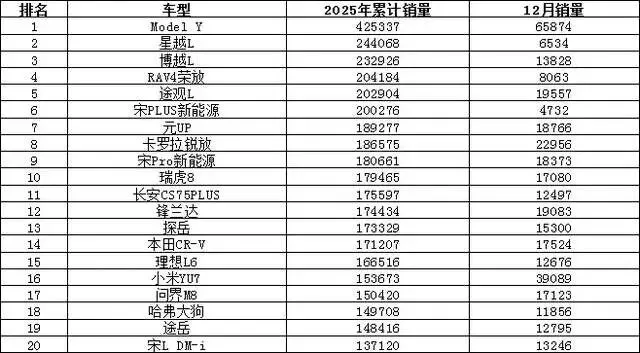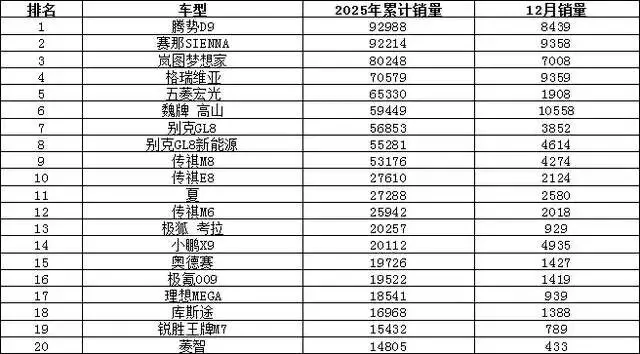 最后附上2025年轿车、SUV及MPV的销量详细榜单。