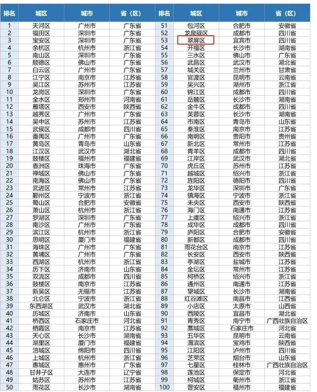 全国投资潜力百强区