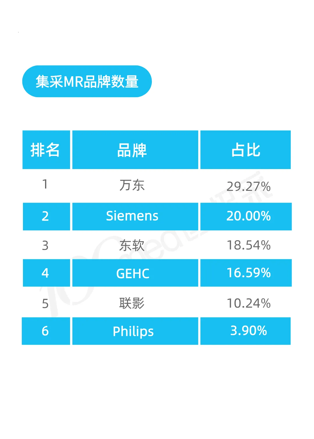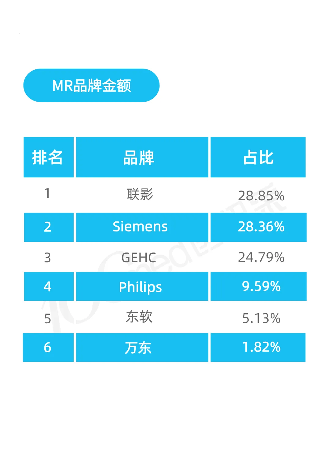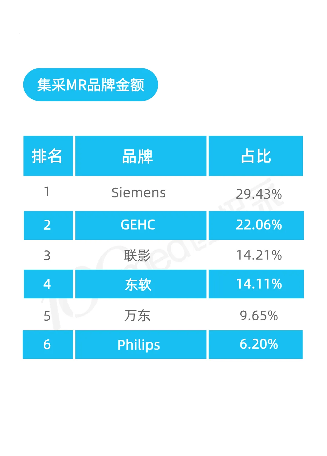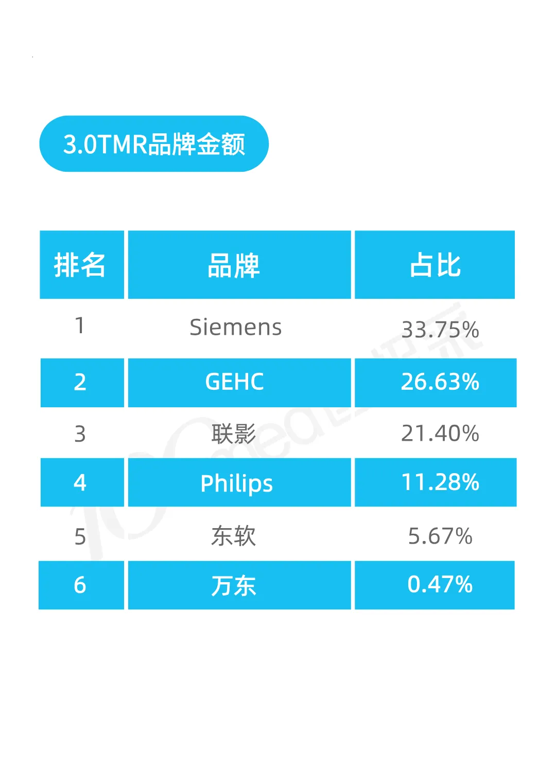 榜单内品牌企业如对数据统计有异议,欢迎邮件至100med@100med.com,我们将及时与您联系。本排行榜由北京易佰智汇数据咨询有限公司出品,基于本公司认为可靠的且目前已公开的数据信息统计得来,我们力求但不保证该信息的准确性和完整性,上述内容和意见仅供参考,我公司及其雇员对使用本排行榜及其内容所引发的任何直接或间接损失概不负责。本排行榜版权归我公司所有,任何机构和个人如需转载、引用、翻版、复制、刊登请注明来源。