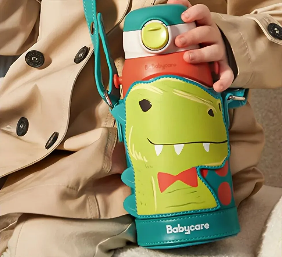 它的杯身设计充满童趣,星际熊的卡通形象超受娃喜欢,杯身是防刮耐磨的烤漆材质,娃不小心摔倒也不会掉漆,自带的背带可调节长度,从幼儿园到小学都能用,而且背带柔软透气,不会勒到娃的肩膀。