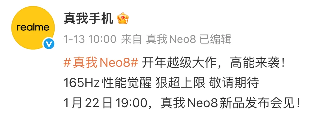 回归 OPPO 后的首款新机真我 Neo8,正式定档。