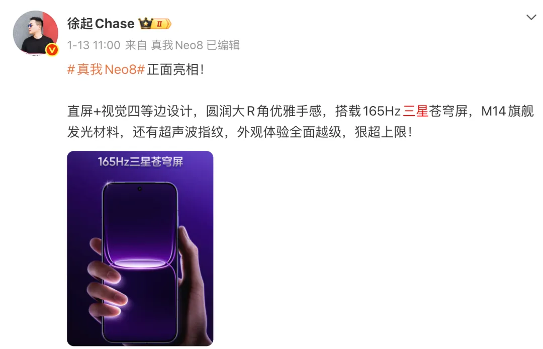 之前真我 GT8 发布的时候,很多网友都说想要「三星屏」的版本。
