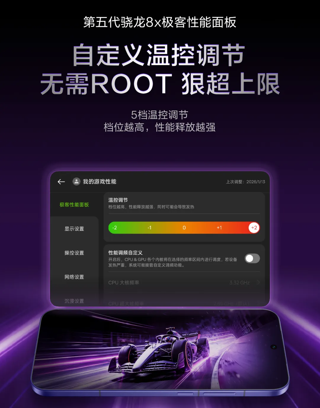 除了支持自定义 CPU/GPU 频率外,现在还支持了 5 档的自定义温控调节。