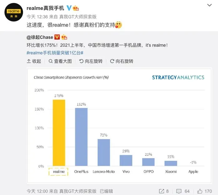 对于 realme 的突然回归。