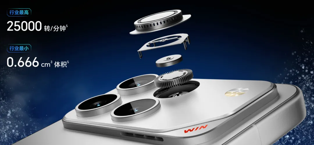 荣耀WIN用的是第五代骁龙8至尊版处理器,搭配LPDDR5X内存和UFS4.1存储,跑分超过四百万,在安卓系统里没有对手,不过光有性能还不够,散热如果跟不上就容易掉帧发烫,荣耀给它装了一个叫“东风涡轮”的小风扇,转速可以飙到两万五千转,直接对着芯片吹风,再加上3D蝶翼VC均热板,实际测试玩《原神》和《星穹铁道》,全程保持60帧不卡顿,机身最高温度只有43度,这个温度控制效果比很多用同样芯片的普通旗舰手机还要好。