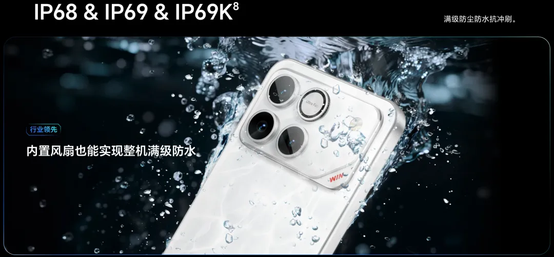 在设计上有不少细节值得留意,这款手机具备IP68/IP69/IP69K级别的满级防尘防水抗冲刷能力,风扇区域做了单独密封,不用担心水溅到上面,中框用的是雾面金属材质,拿在手里不容易滑,也不会留下指纹,配色名称也起得挺有意思,比如“快开黑”“指定赢”“不怕蓝”,听起来像是游戏里的说法,其实是贴近生活的叫法,想让人觉得这手机不光是打游戏用的,这些细致的地方,说明荣耀确实考虑到了用户怎么用手机,不只是简单堆配置。