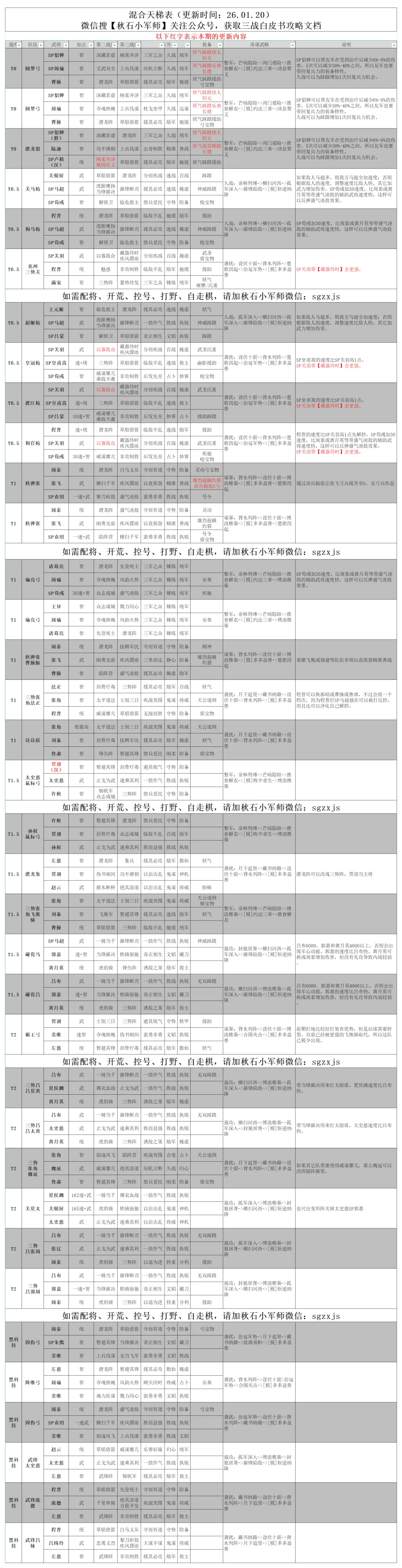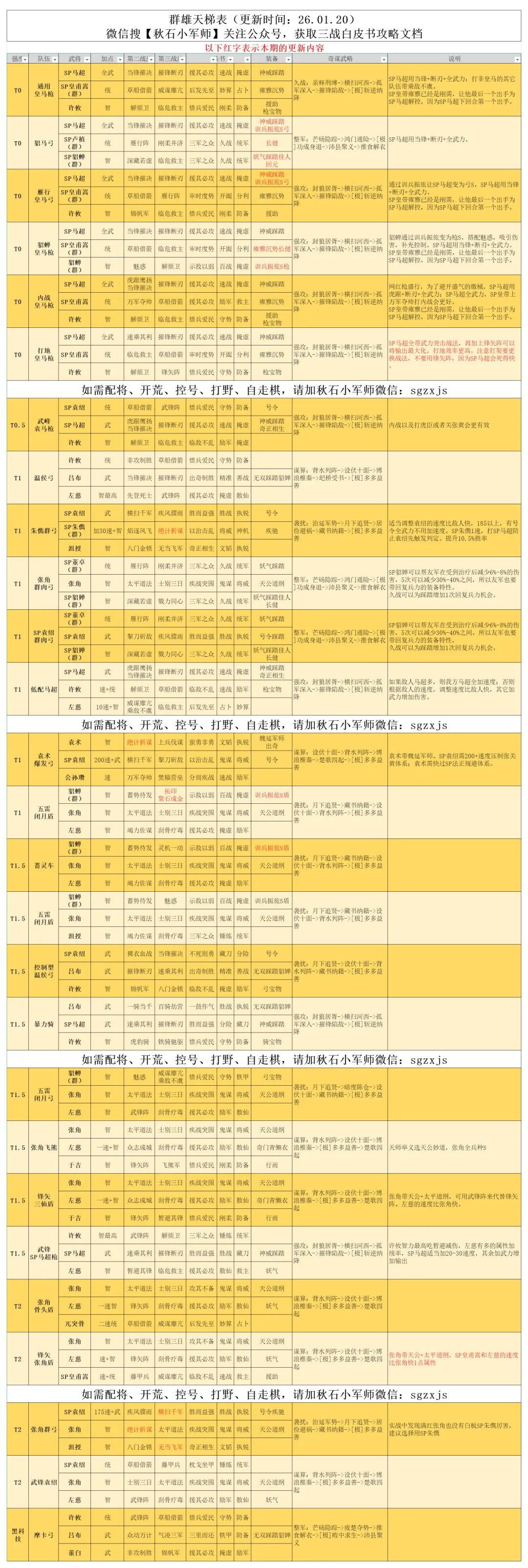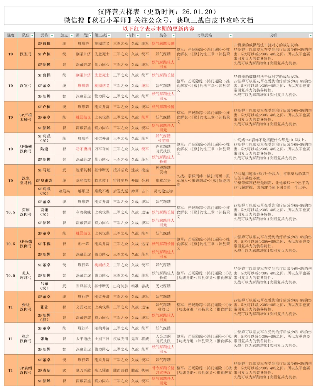 经过这几天的实战测试,秋石小军师已经完成【汉焰长明】剧本的天梯表的更新~~欢迎大家看看,如果有修改意见,请在评论区提出,谢谢。之后每周都会根据实战情况进行调整更新~~