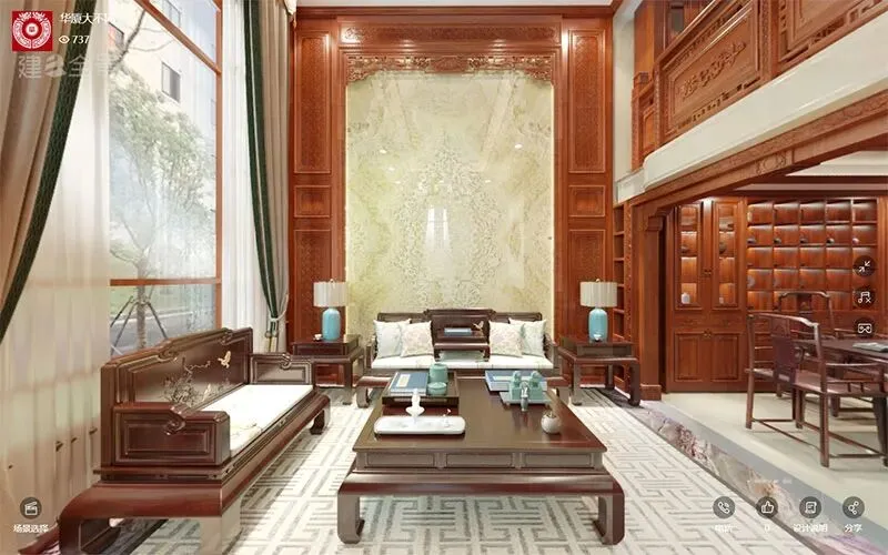 明堂家居:1998年创办,形成红木成品家具、全屋原木整装、园林仿古建筑三大业务核心,打造“成品+定制+软装+智能”四位一体的中式生活美学全屋整配服务。