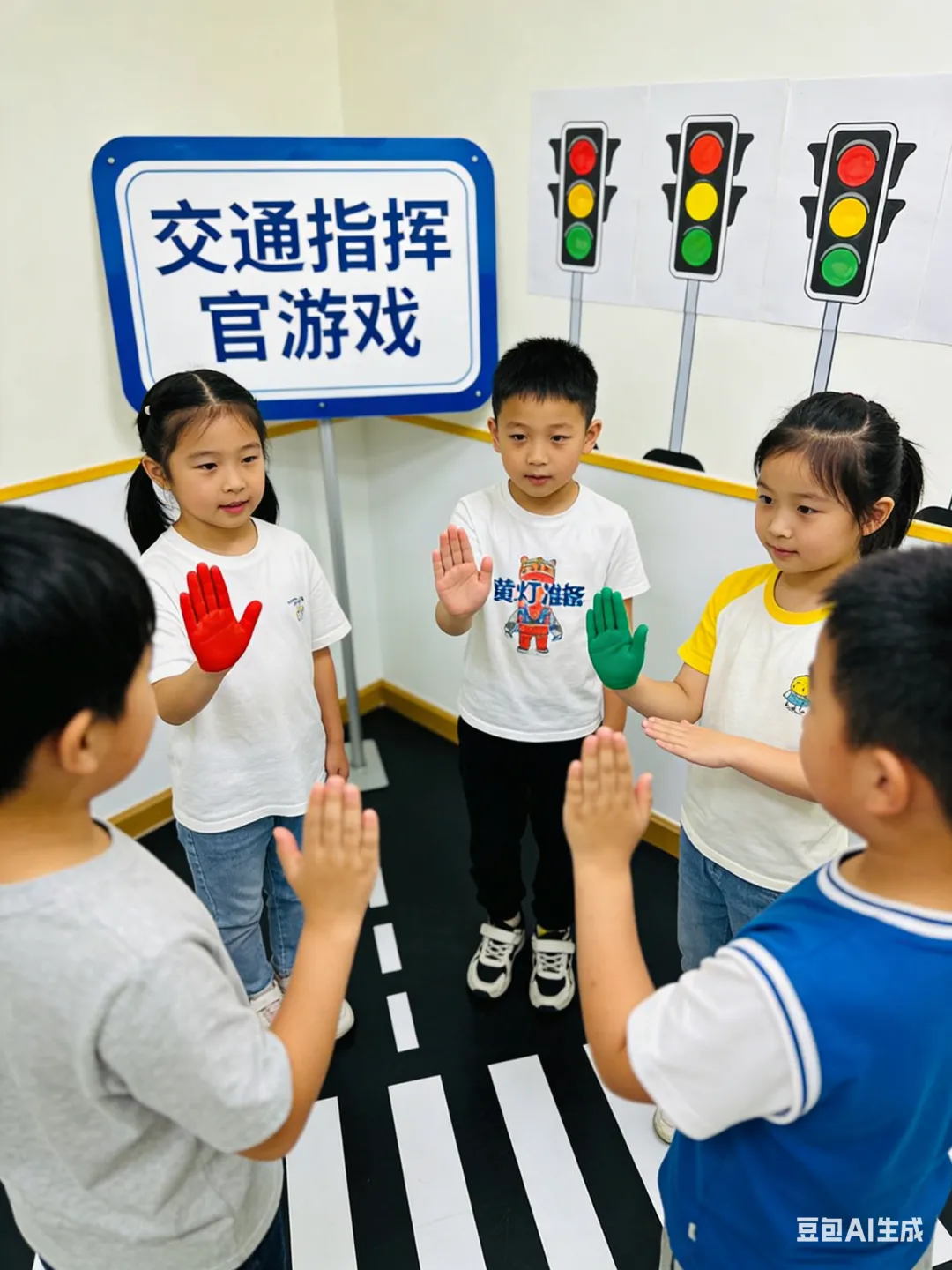 ✨代表游戏:交通指挥官结合现实场景的肢体语言学习,让孩子能快速理解并运用,同时锻炼肢体表达能力: