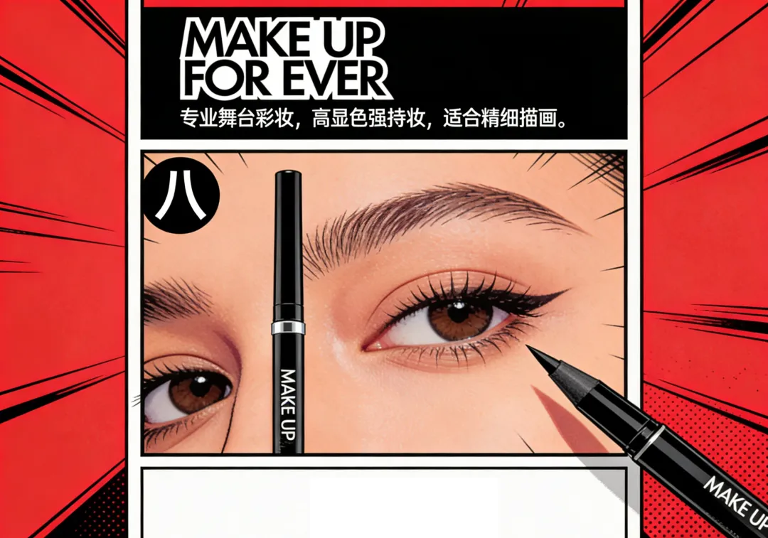 八、MAKE UP FOR EVER专业舞台彩妆,高显色强持妆,适合精细描画。