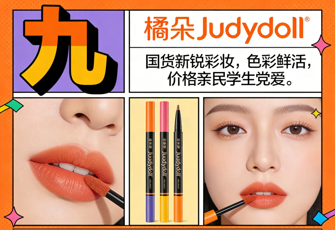 九、橘朵Judydoll国货新锐彩妆,色彩鲜活,价格亲民学生党爱。