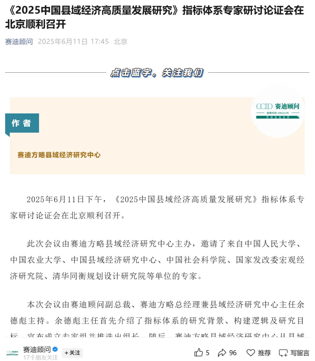 2025年7月23日,北京某论坛上,赛迪顾问高调发布了“2025全国县域经济百强榜”。