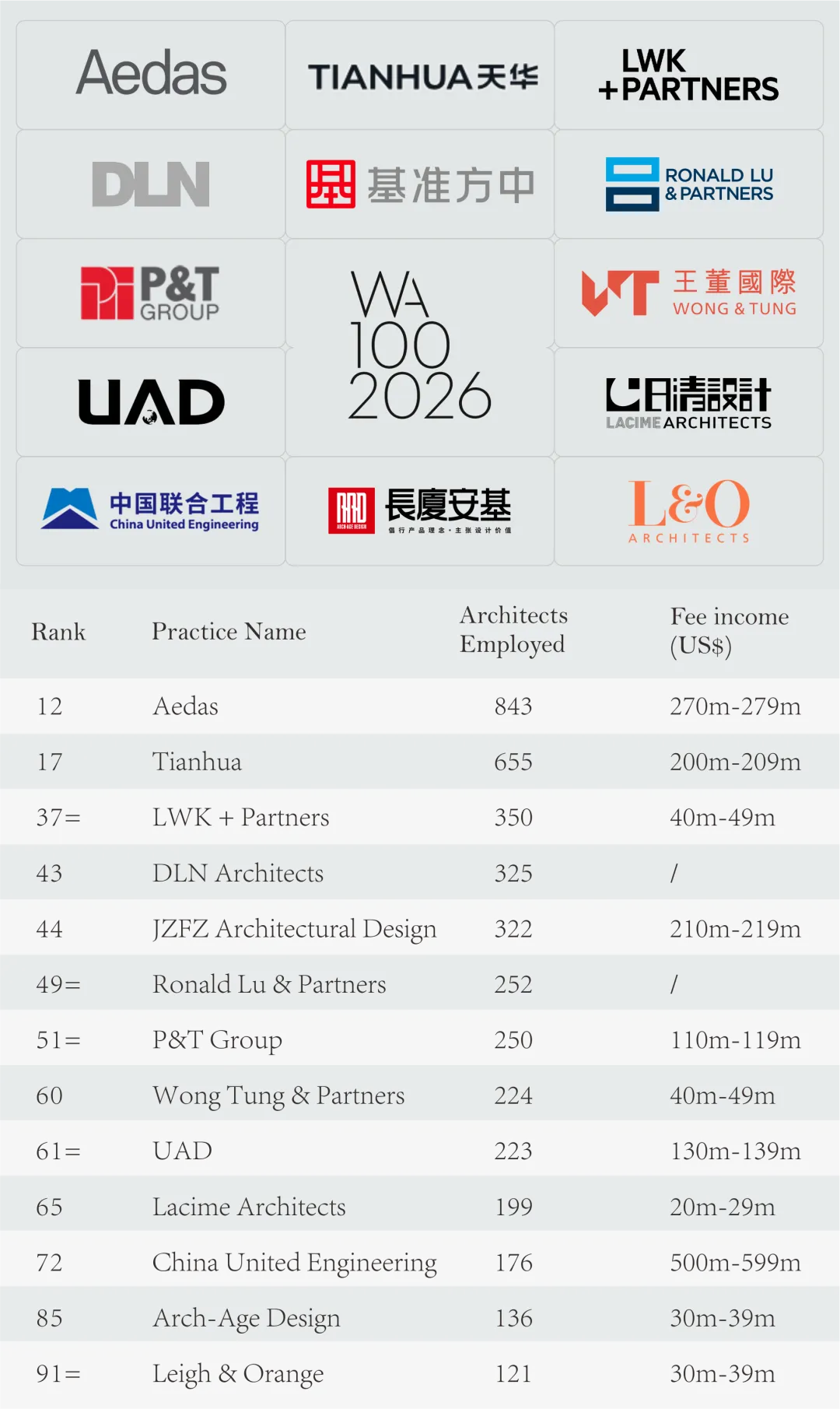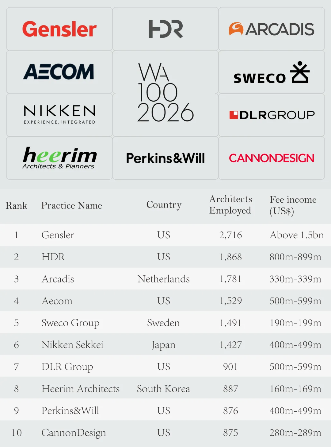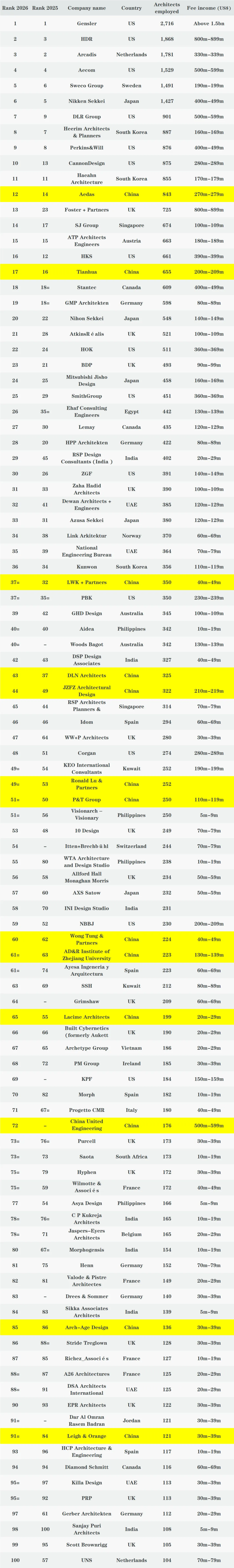 附 WA100 2026 全球百强建筑设计公司榜单