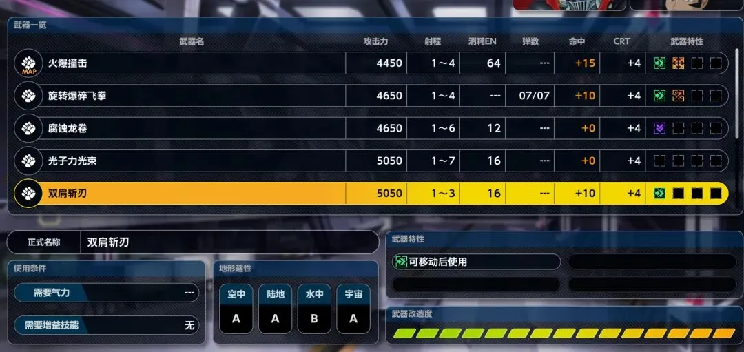本关一上来我方只有风灵高达和学院训练机,如果要获得隐藏角色盖尔的话需要先击坠萨宾娜并触发剧情,风灵高达解锁新武器连续攻击,之后击败沙迪克,进入本关后办。后半我方会从学院处出场,敌人从右侧出现,双方距离很近,会直接变成接近战。