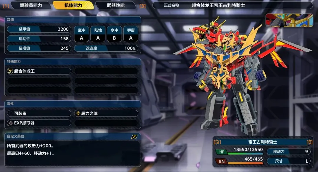 我们最初在地图下方中间出场,和敌方部队离的很近。击坠5个敌人后,触发剧情,开始播放盖塔ARC的合体动画并登场在早乙女研究所前面。再击坠3个敌人后,敌方增援会出现在地图左侧,数量很多但是强度不高。