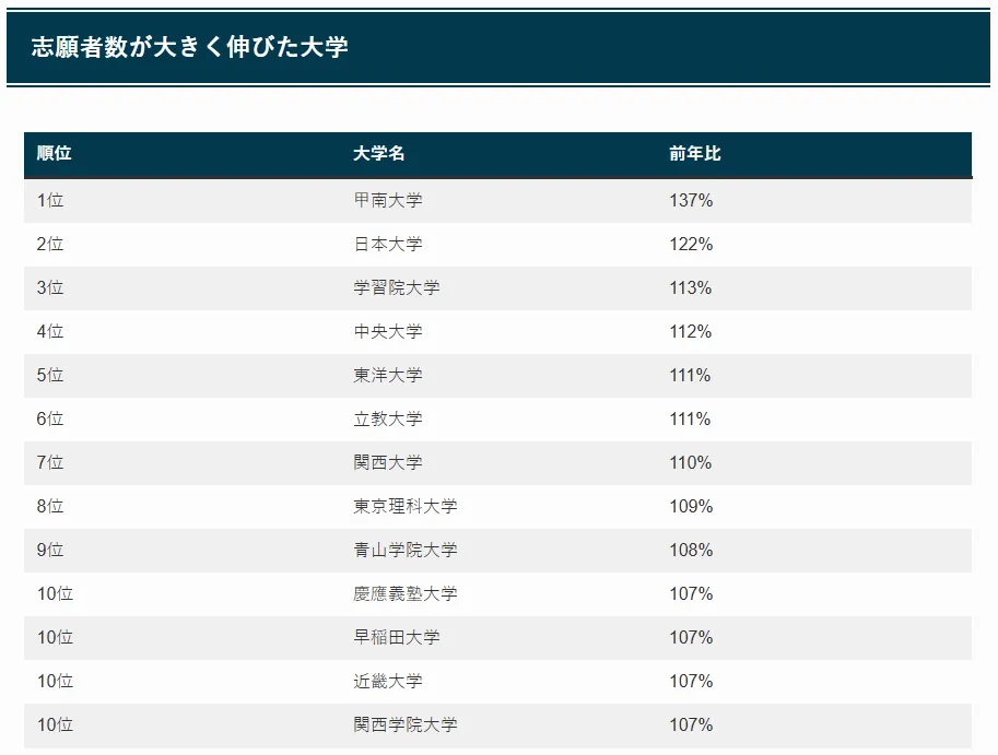 2025日本私立校人气飙升榜,申请人数显著增加的大学排名!