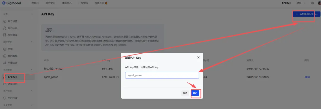 申请智谱 BigModel的APIKEY