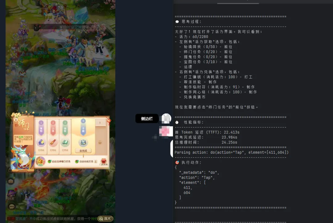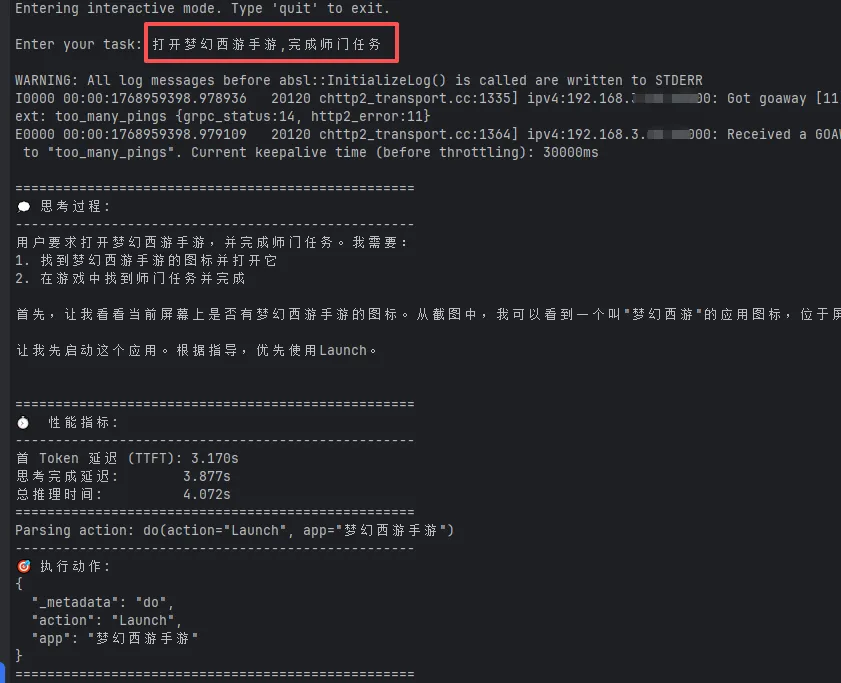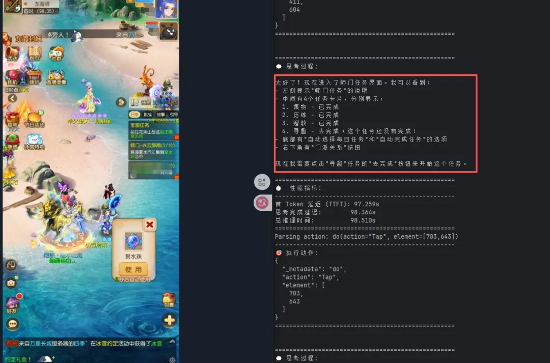 然后在task上输入任务:打开梦幻西游手游,完成师门任务