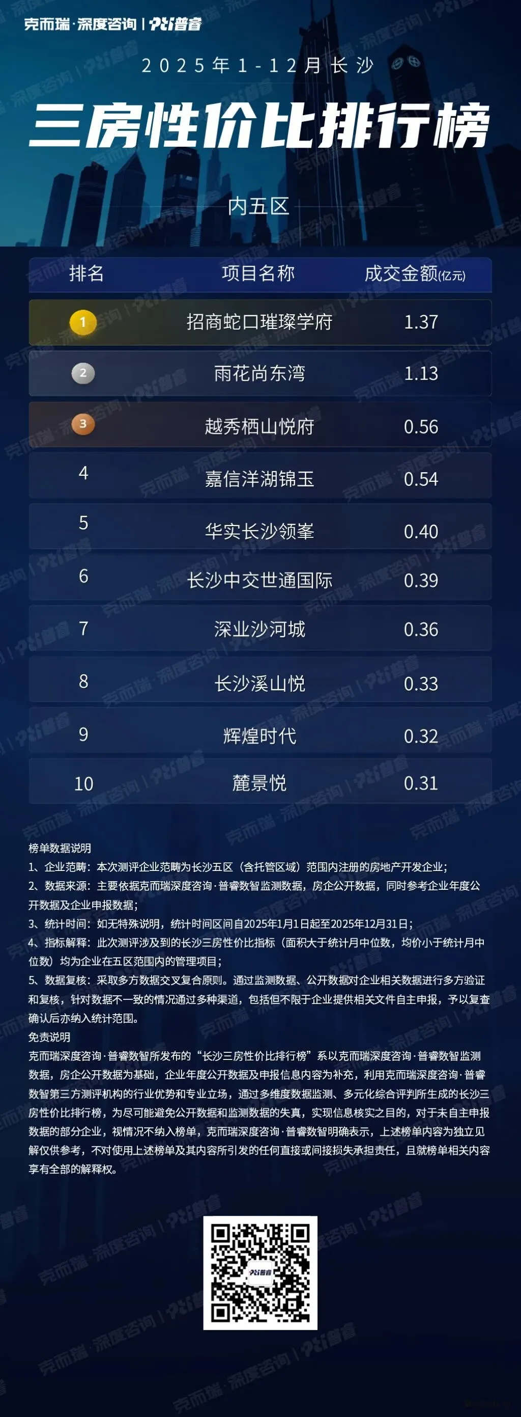 【中交麓江春望】与【中交瑞启芙蓉】同样以“高产品力+高性价比”策略成功切入市场。其中,【中交瑞启芙蓉】作为中交投资在湖湘地区的首发作品,依托芙蓉区核心地段、双地铁交通配套及一中双语教育资源的综合优势,首推122套143平方米房源,去化率超80%,并跻身年度高性价比四房产品前十榜单,印证了在主流市场中,地段、配套与产品力均衡发展的重要性。