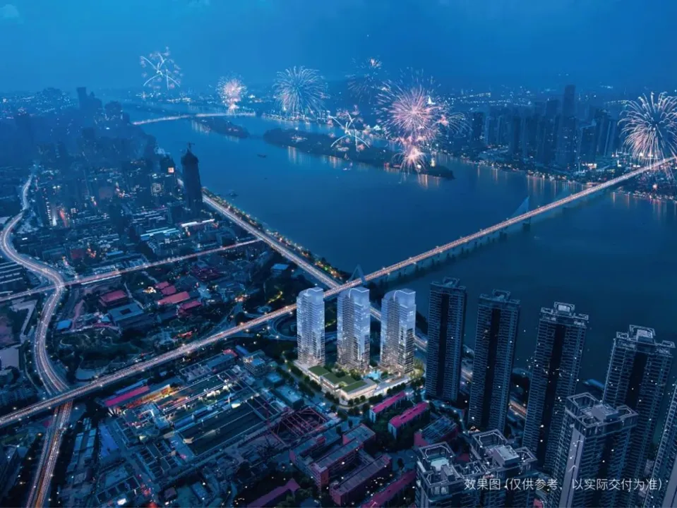 项目坐拥长沙黄金江景带的核心段落,采用270°环幕视野与端厅设计,将湘江、橘子洲、岳麓山景观全方位融入日常生活。