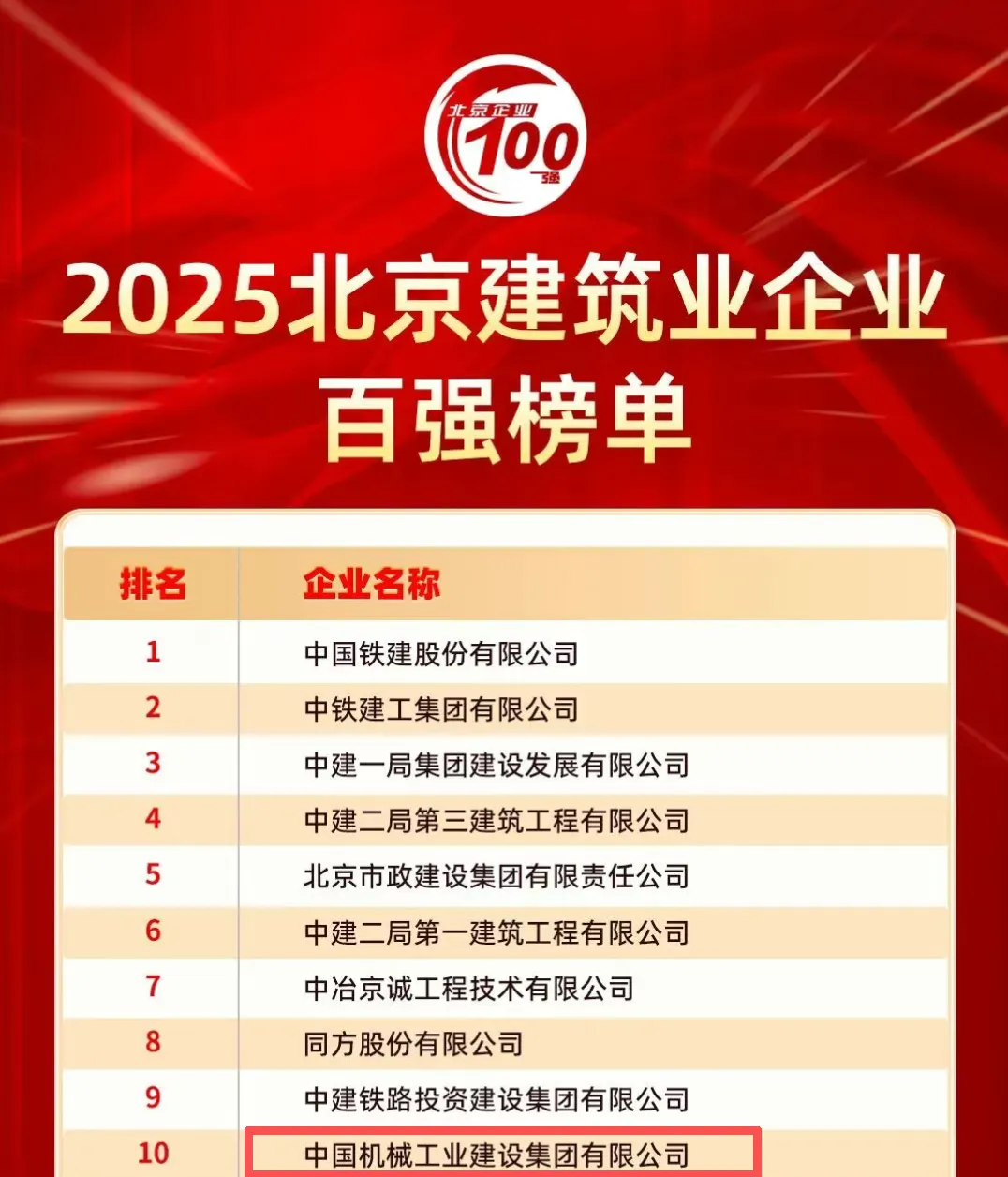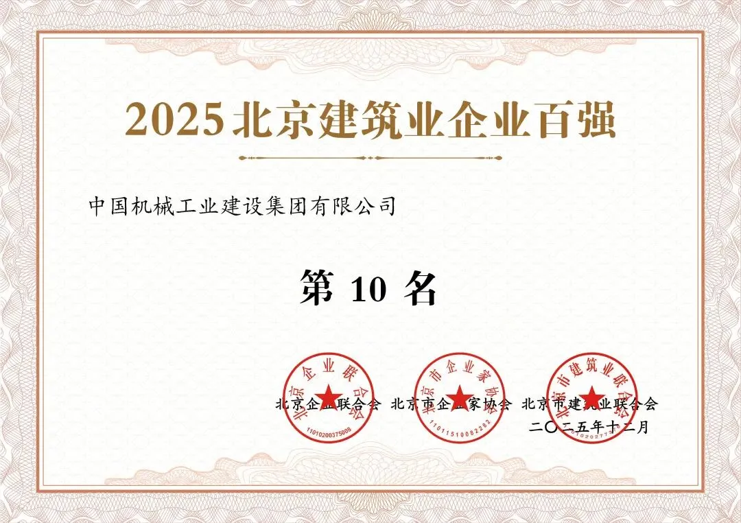 12月26日,2025京津冀产业链供应链创新发展峰会系列活动之2025北京百强企业发展论坛在北京召开。会上发布了2025北京建筑业企业百强榜单,中机建设荣获第十名,至此已三年蝉联榜单前十五名。