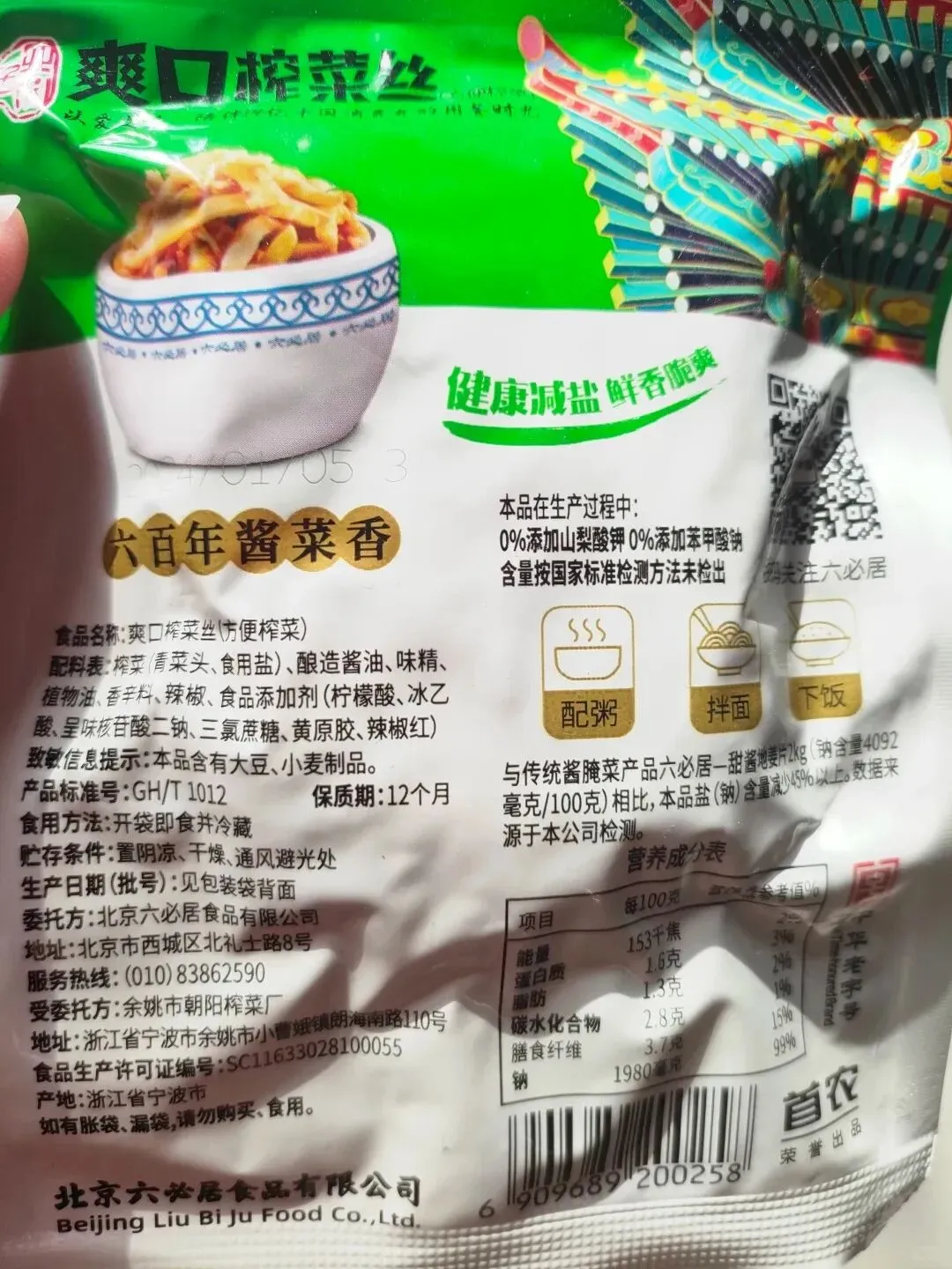 和南方榨菜不同,六必居走的是酱腌路线,酱香醇厚浓郁,咸甜适中,色泽鲜亮,几乎没有冲劲儿的辣味,更能吃出青菜头的本味。不管是配馒头、花卷,还是拌豆腐、炒鸡蛋,都能添上点睛之笔,妥妥的北方佐餐老伙计。