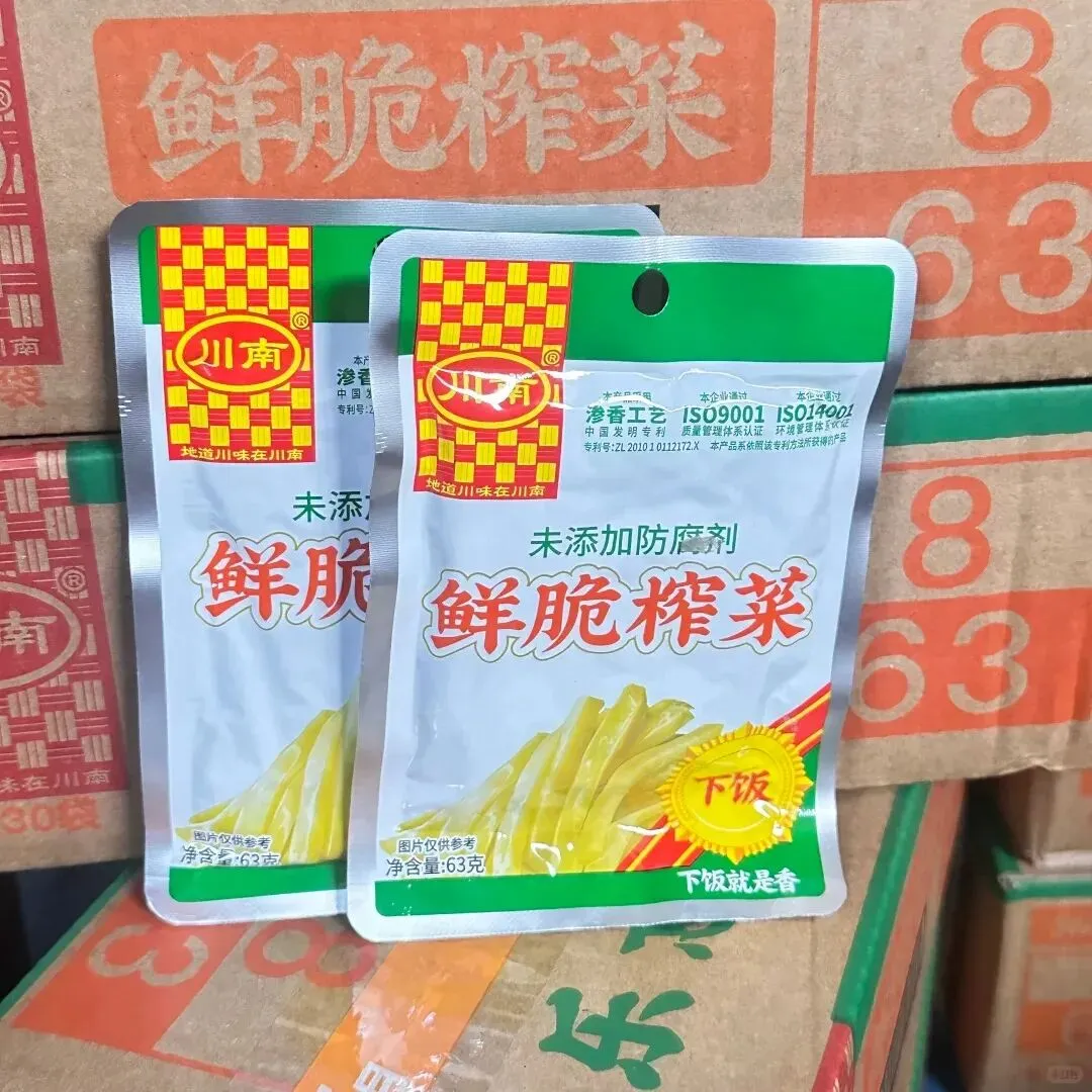 川南榨菜酱香浓郁、咸辣适中,采用四川传统泡渍工艺,长时间腌渍让味道渗透到每一根榨菜丝,不会出现“外面咸里面淡”的尴尬。口感脆嫩有嚼劲,价格还实惠,是四川本地家庭的常备款,日常佐餐性价比拉满。