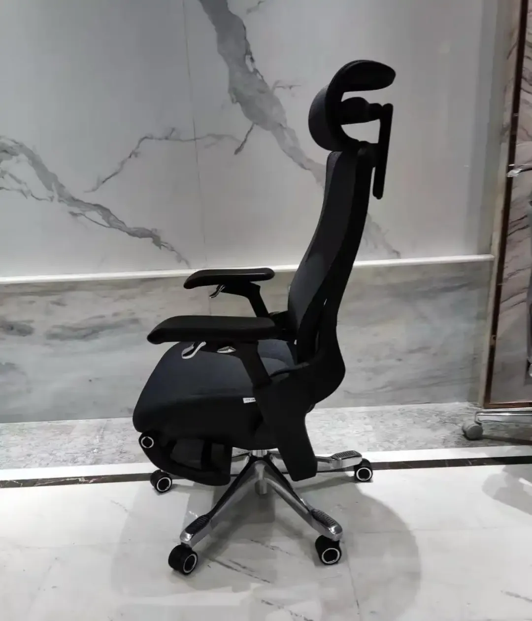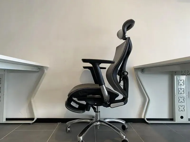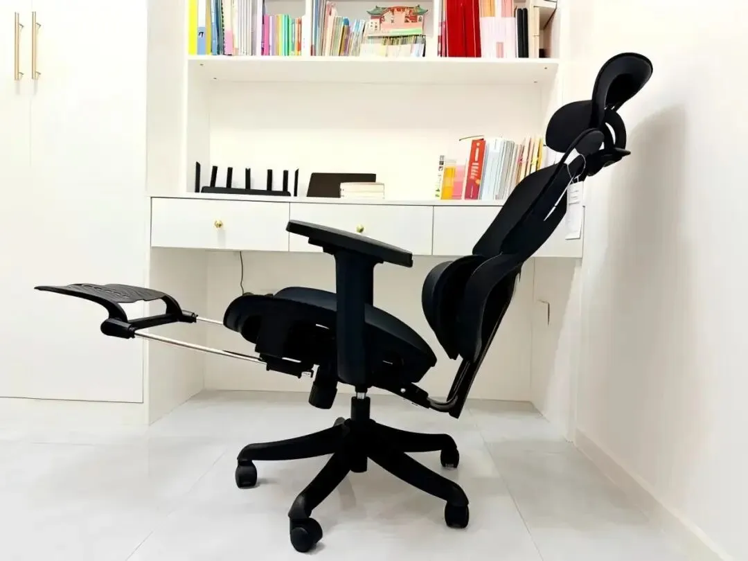 调节表现:调节功能全面,适配办公与休息场景。扶手调节可与椅背后仰联动,贴合身体姿态变化;靠背后仰最大角度约150度,搭配隐藏式伸缩脚踏,方便短暂小憩。头枕支持多角度旋转,能适配不同颈部姿态。缺点是仅两档锁定,角度跨度略大,难以找到更精准的休息角度。
