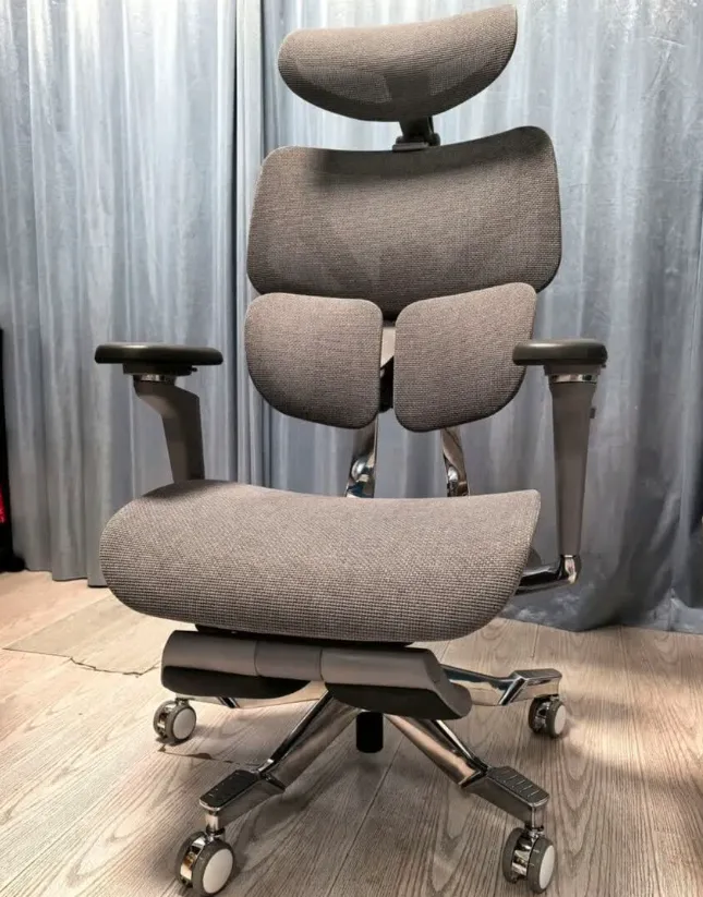 首先肯定是看调节功能,护腰这块太关键了:腰靠必须选能动态跟随,最好有微米级微调的功能,不管你怎么坐,都能实时贴住腰椎,让脊椎保持自然曲线,这样腰椎压力才小;头枕得要3D可调的,能双轴旋转,给颈椎精准的支撑,不然颈椎不舒服还会连带腰疼;扶手选多向联动的,不用弯腰去迁就,能减少腰部的额外负担;后仰角度得选140°以上的,配个腿托躺平休息,腰部也能一直有支撑。