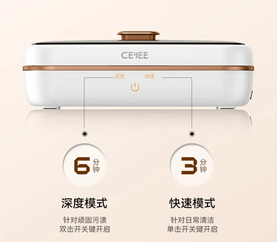 在健康和杀菌方面,希亦CG超声波清洗机还配备UVC紫外线功能,能够在清洗的同时深层杀菌,除菌率高达99.99%,日常使用更放心。