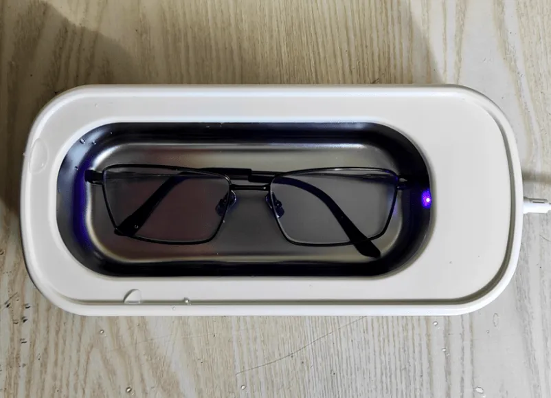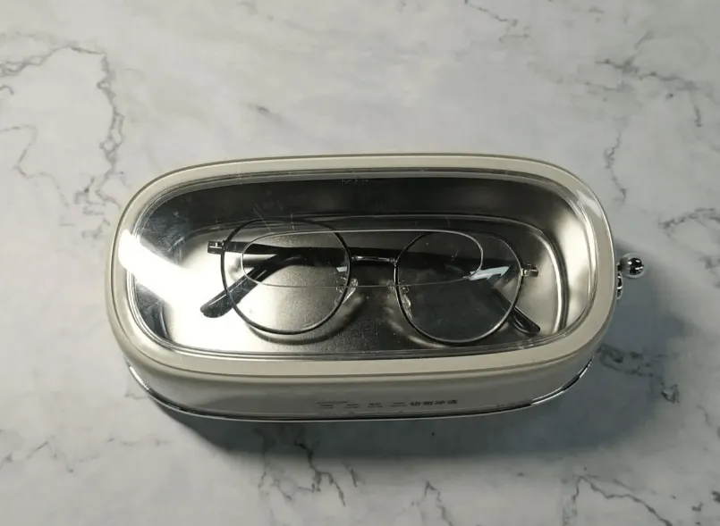 外观上,它采用了镂空式的透明上盖设计,清洗时里面的状态一眼就能看到,过程比较直观。清洁方面,47000Hz 的高频超声波对镜腿缝隙、镜片边缘这些容易积灰、藏油的地方处理得比较彻底,洗完之后细节位置会明显干净很多。