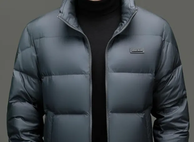 「核心参数」:高含量鹅绒填充,充绒量适配中年男士身形,面料质感优良,清洁度高无异味。